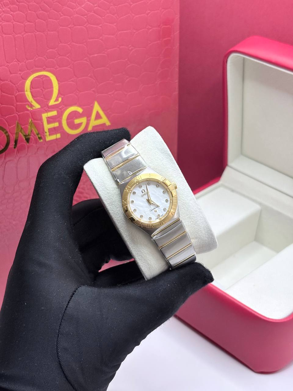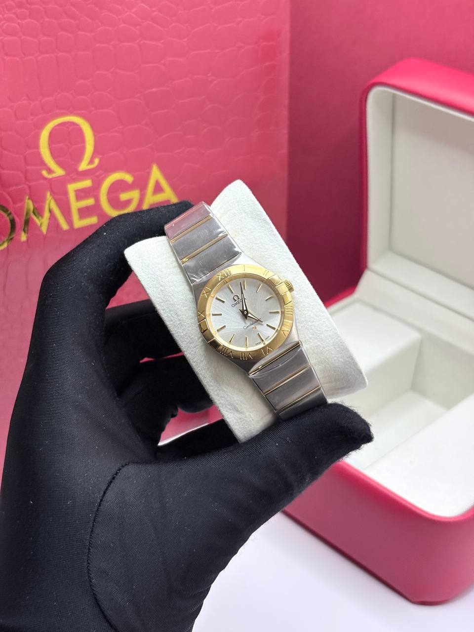 ساعت امگا کانسلیشن سایز اسمال ۲۴ میلیمتر زنانه دورنگ رزگلد موتور سوئیس